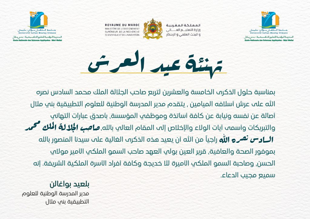 30 July 2024 2024-07-30 12:47تهنئة بمناسبة عيد العرش المجيد