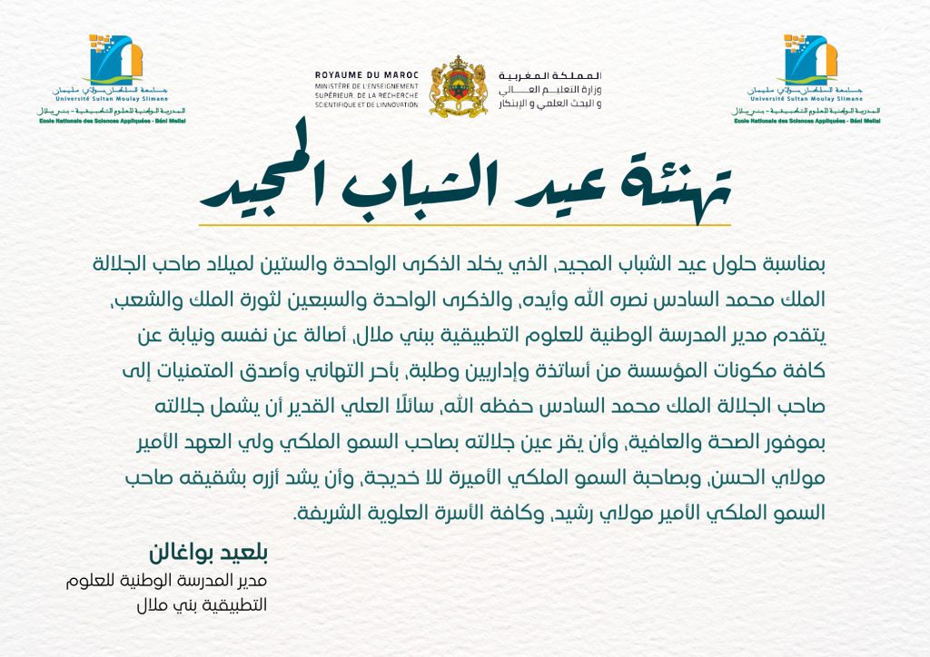 20 August 2024 2024-08-20 9:33تهنئة بمناسبة عيد الشباب المجيد